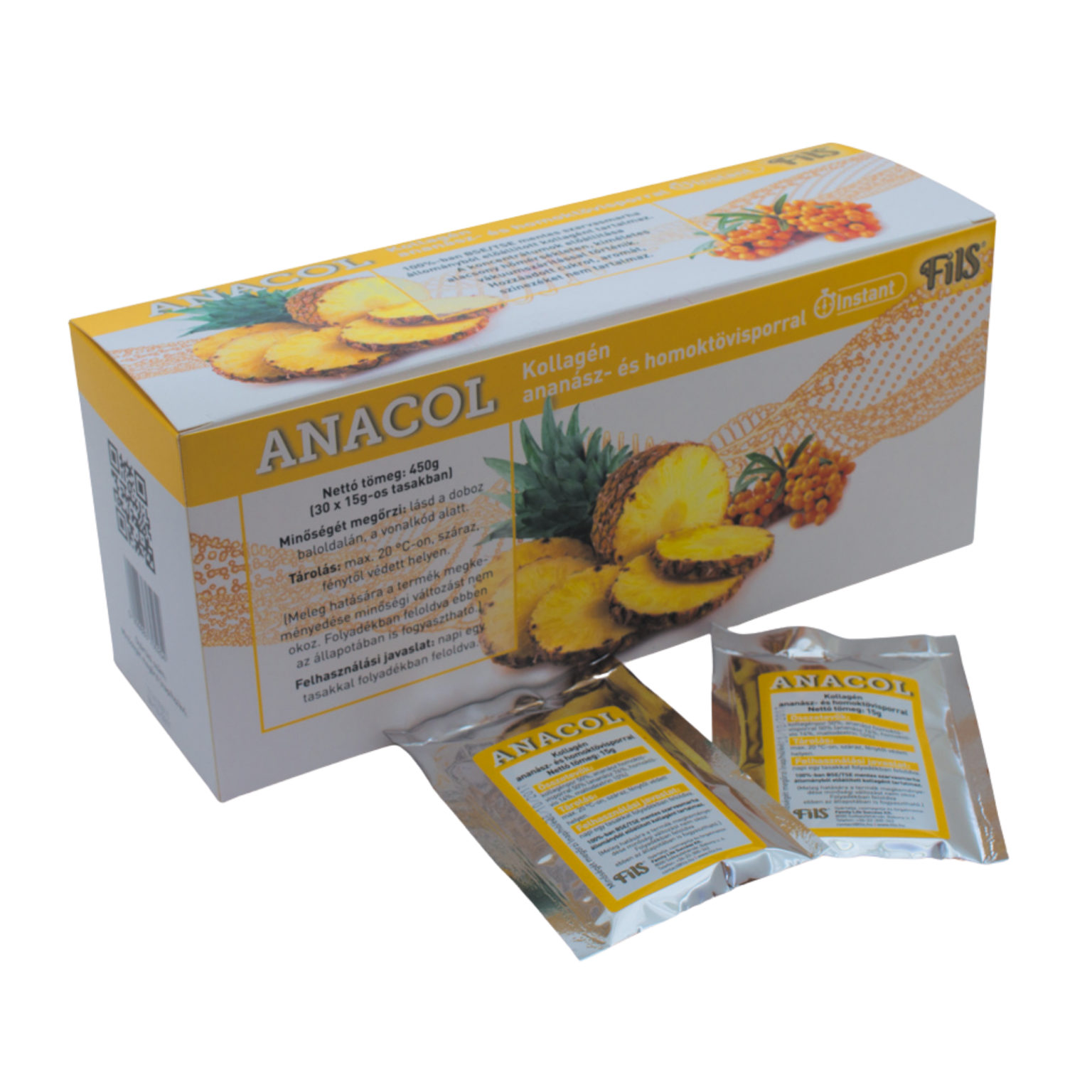 Az ANACOL kollagén peptidekből, gyümölcsléből, és gyümölcs-sűrítményből készül csúcstechnológiával, annak érdekében, hogy minden összetevője természetes formában, hőbomlás nélkül kerüljön a tasakokba.
